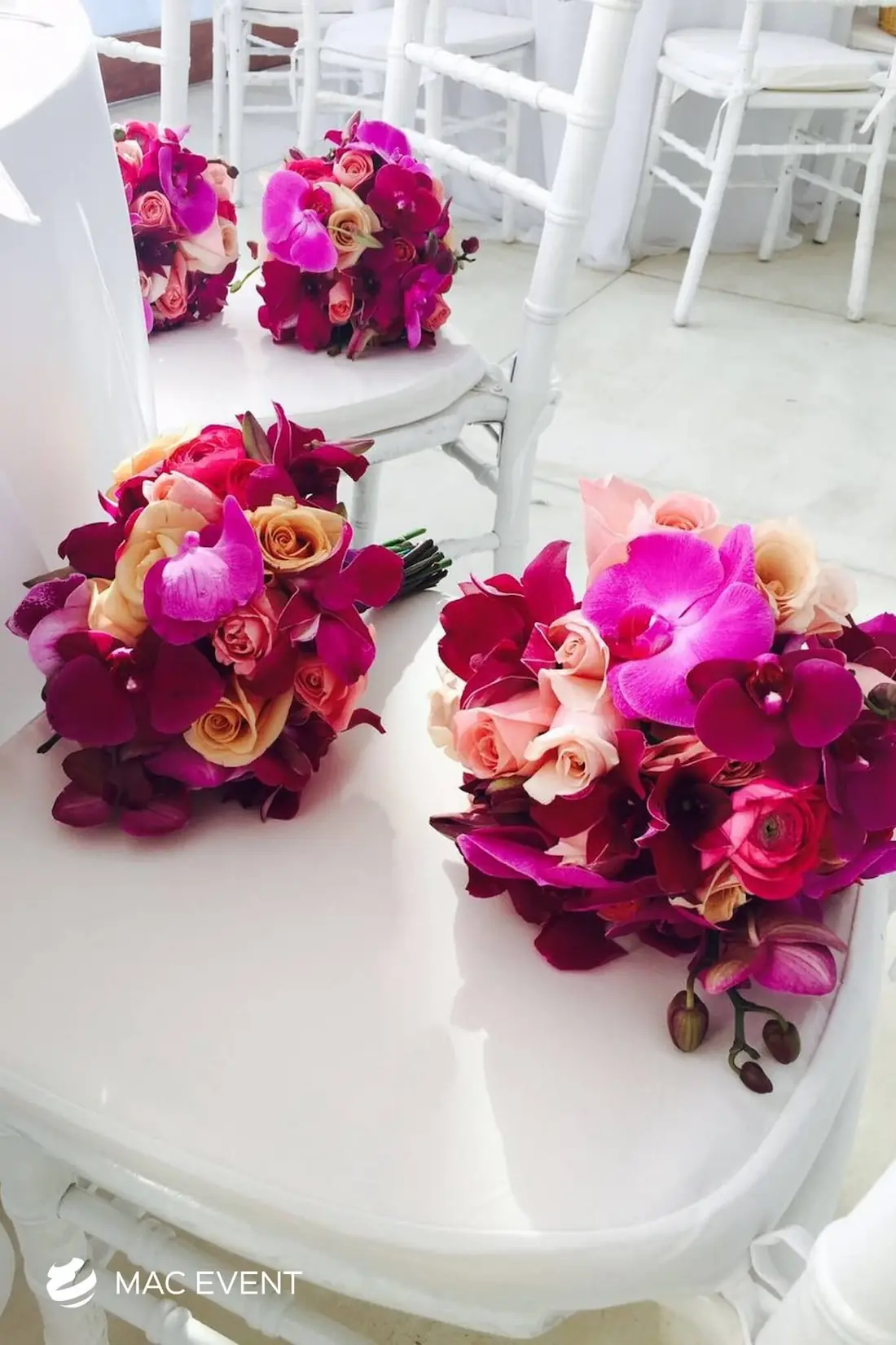 Enhance your wedding party with our bridesmaids bouquets, perfect for weddings in Holbox. These beautifully designed bouquets complement your bridal bouquet and create a cohesive and elegant look.