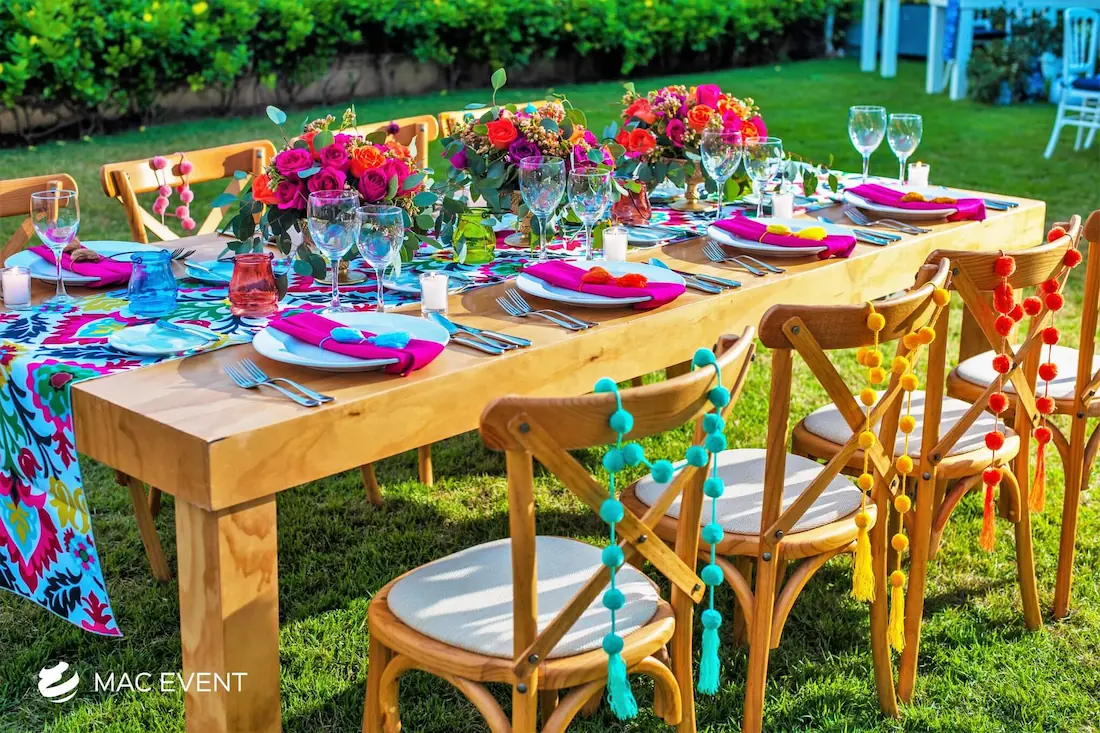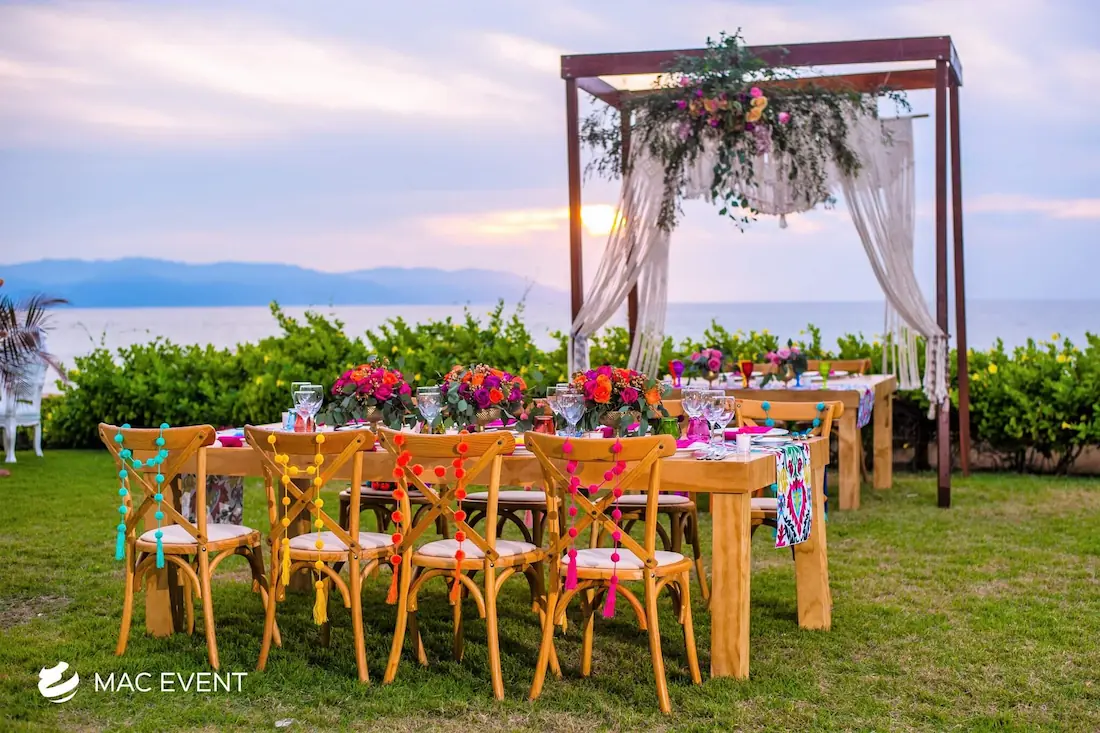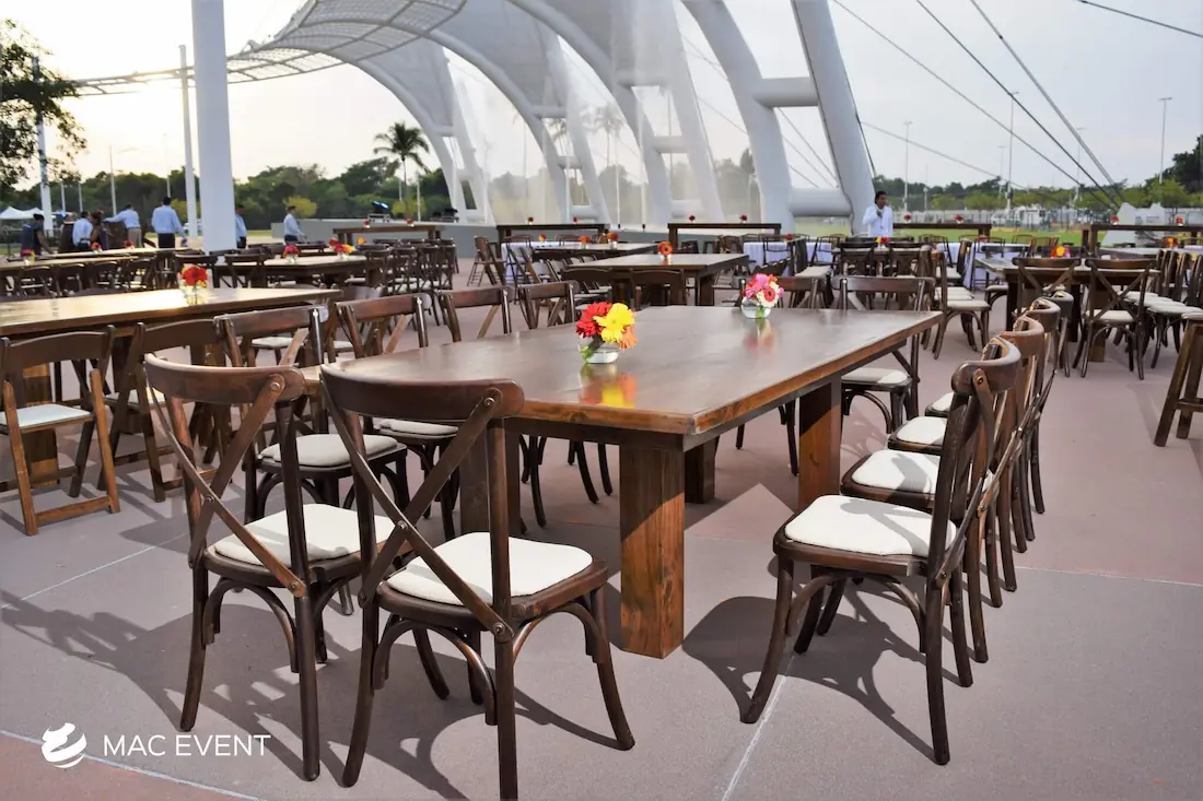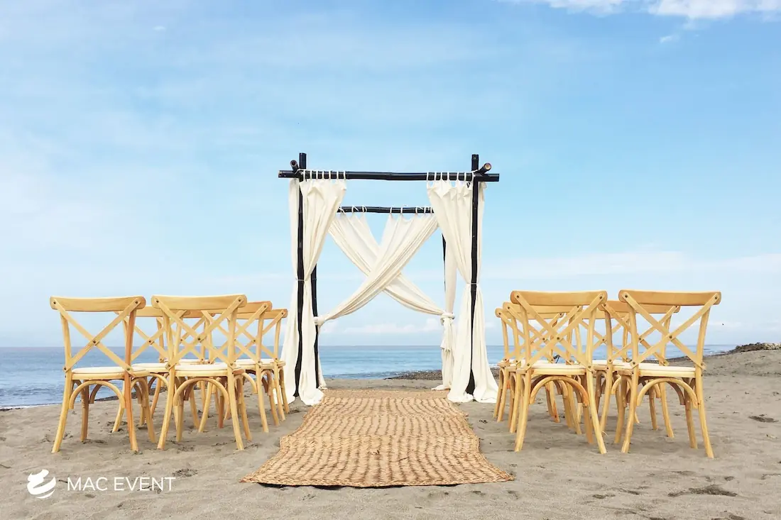 Our cross back chairs are a popular choice for rustic and elegant weddings and events in Holbox. Featuring a charming design and sturdy construction, they add a touch of country chic to your seating arrangements.
