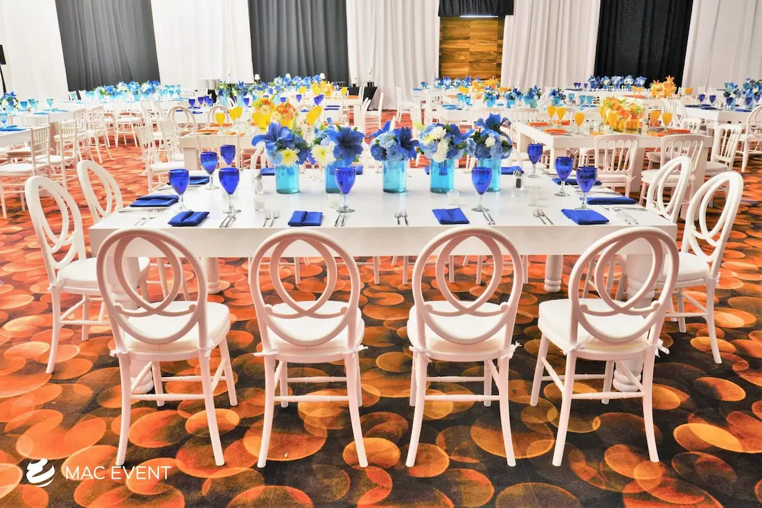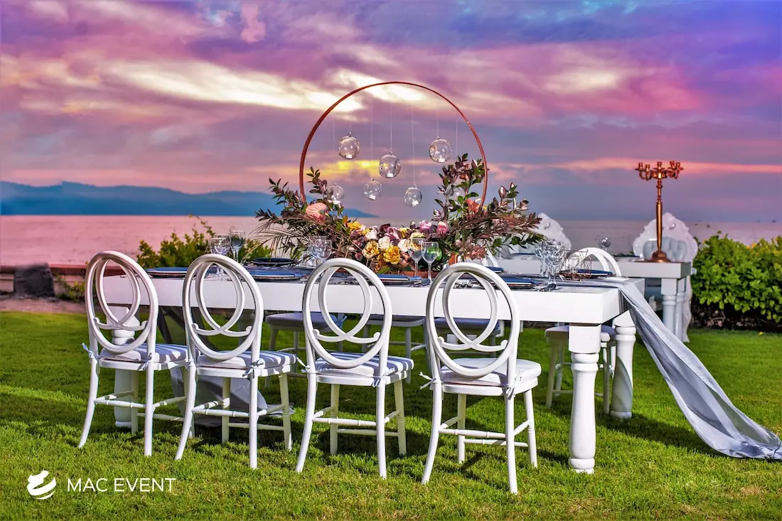 Our Phoenix chairs are perfect for creating an elegant and sophisticated ambiance at weddings and events in Holbox. With a sleek design and comfortable seating, these chairs are a stylish addition to any event.