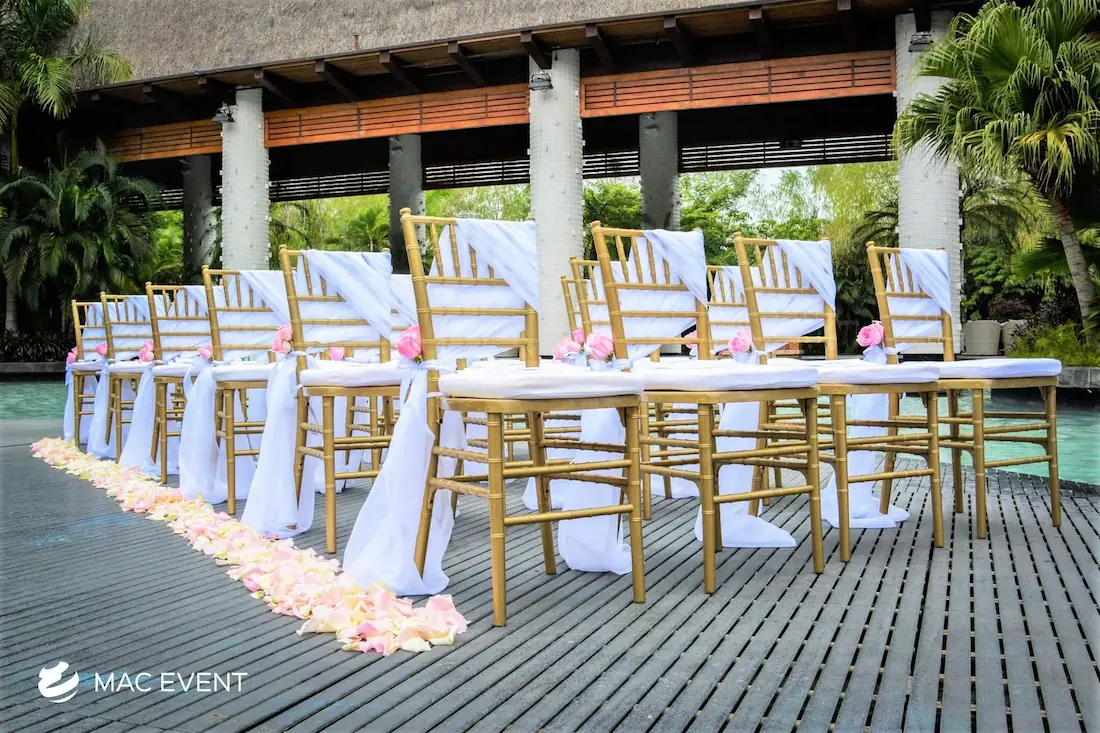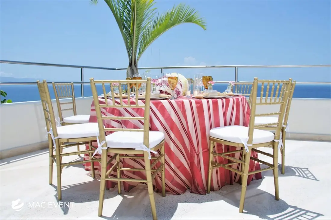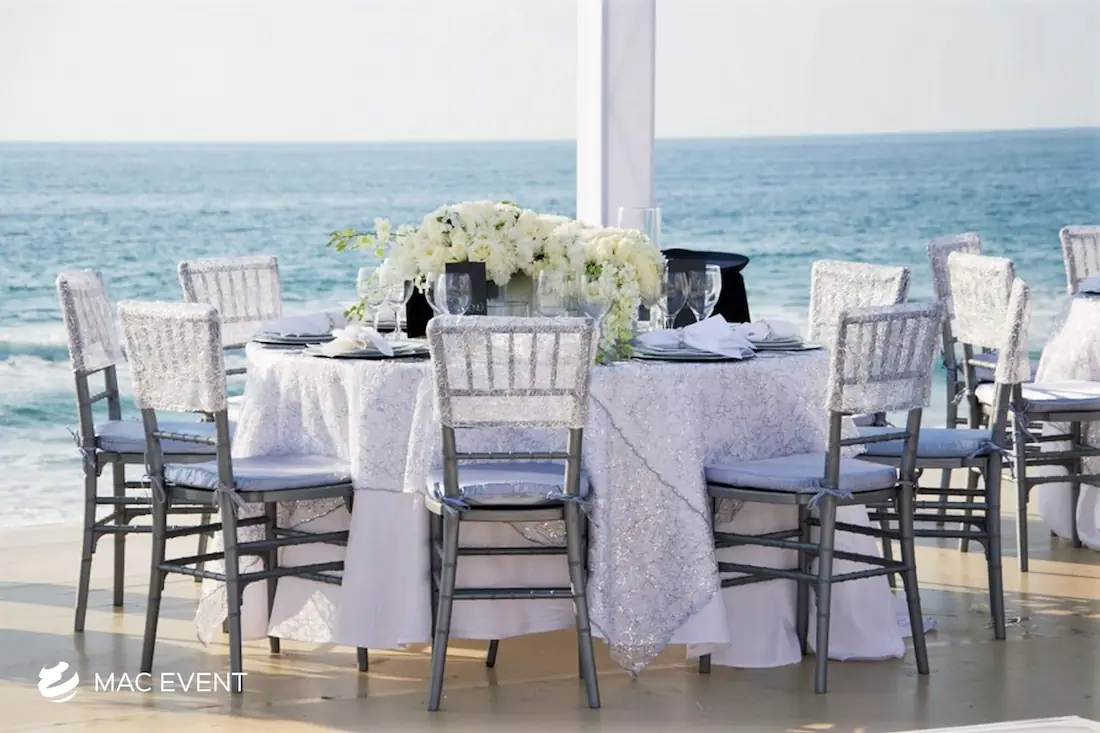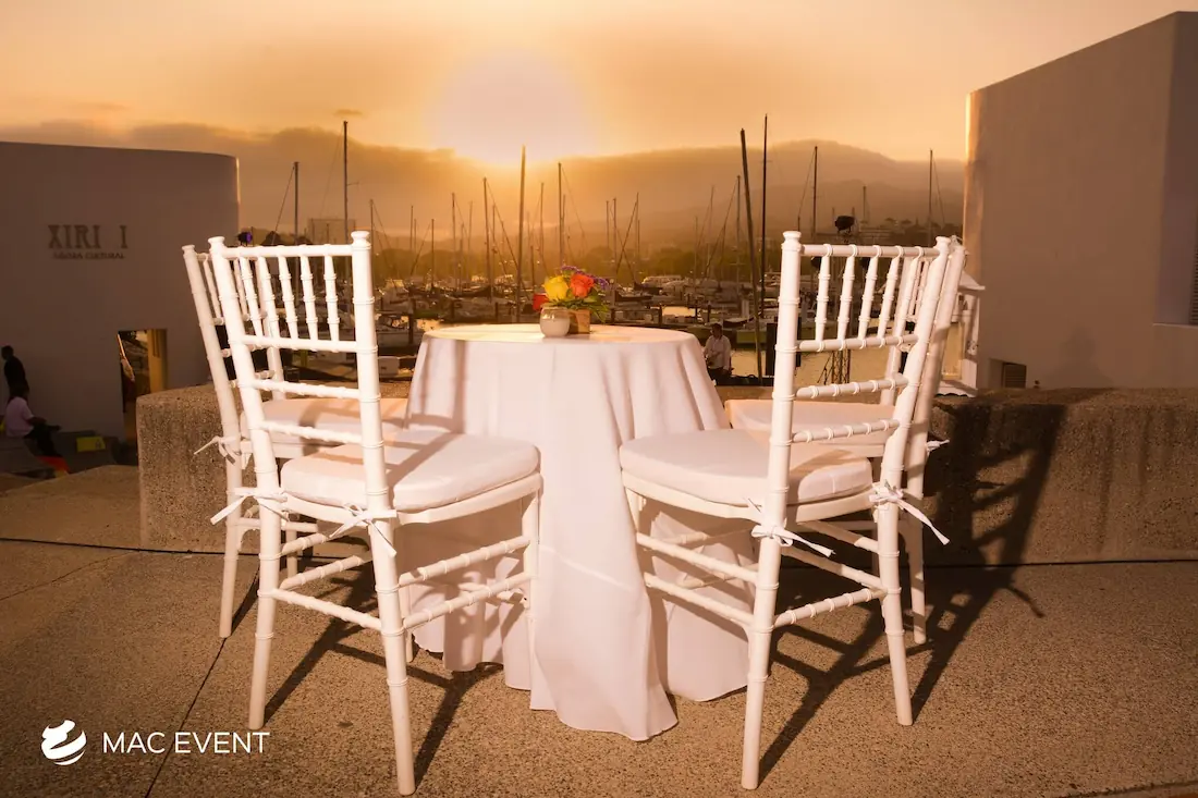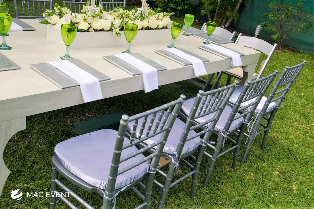 Add a touch of elegance with our resin chivari chairs, perfect for weddings and events in Holbox. Lightweight, durable, and stylish, these chairs are available in multiple colors to complement your event theme.
