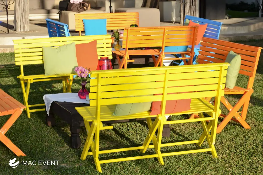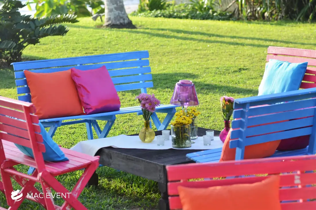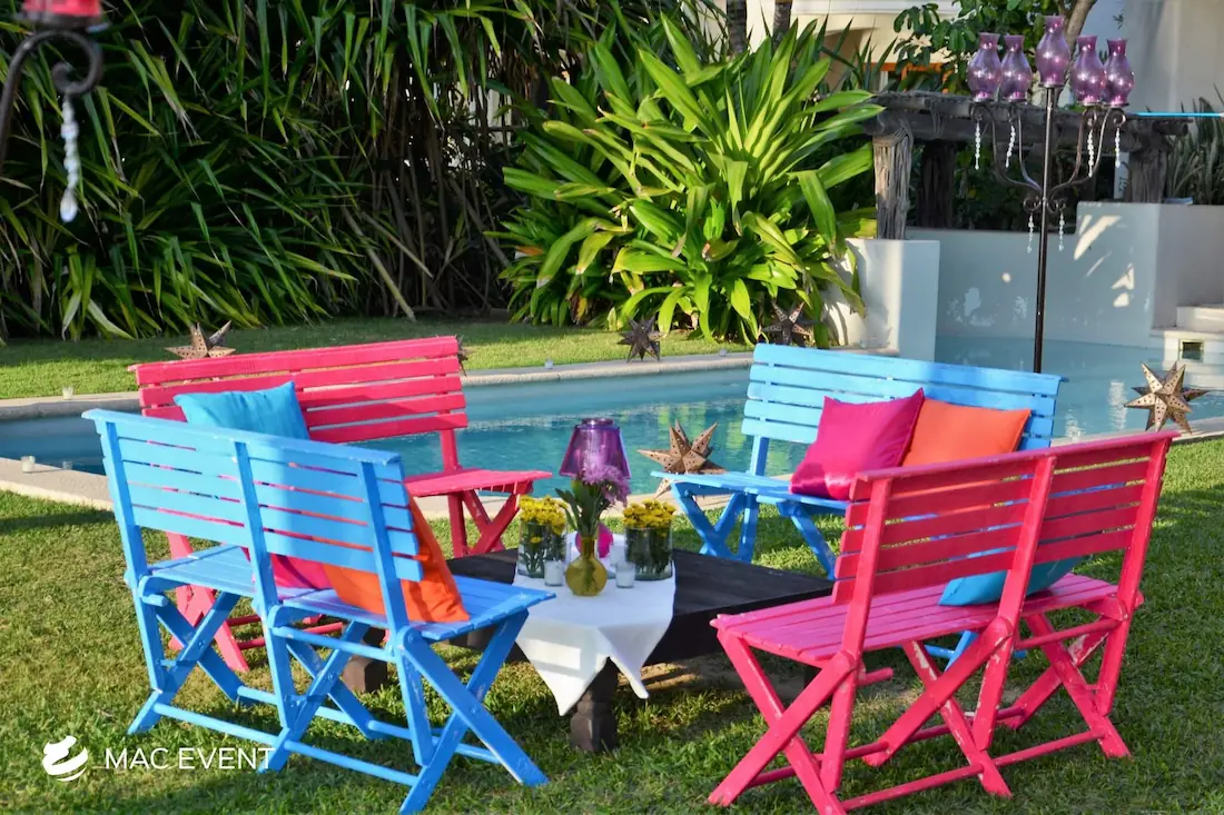 Celebrate local culture with our Mexican lounges, perfect for weddings and events in Holbox. These colorful and beautifully crafted lounges add an authentic and festive touch to your seating arrangements.
