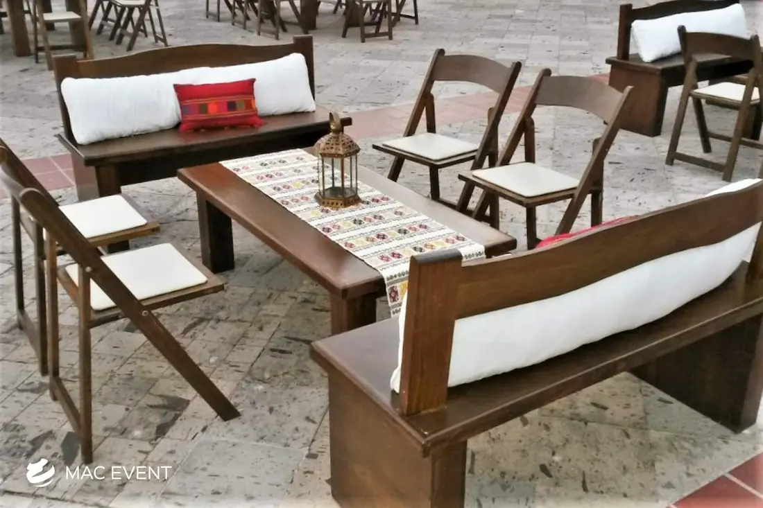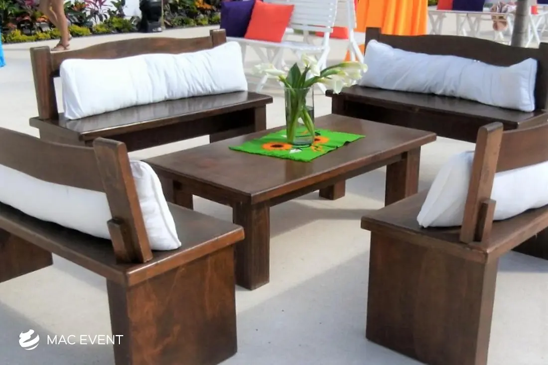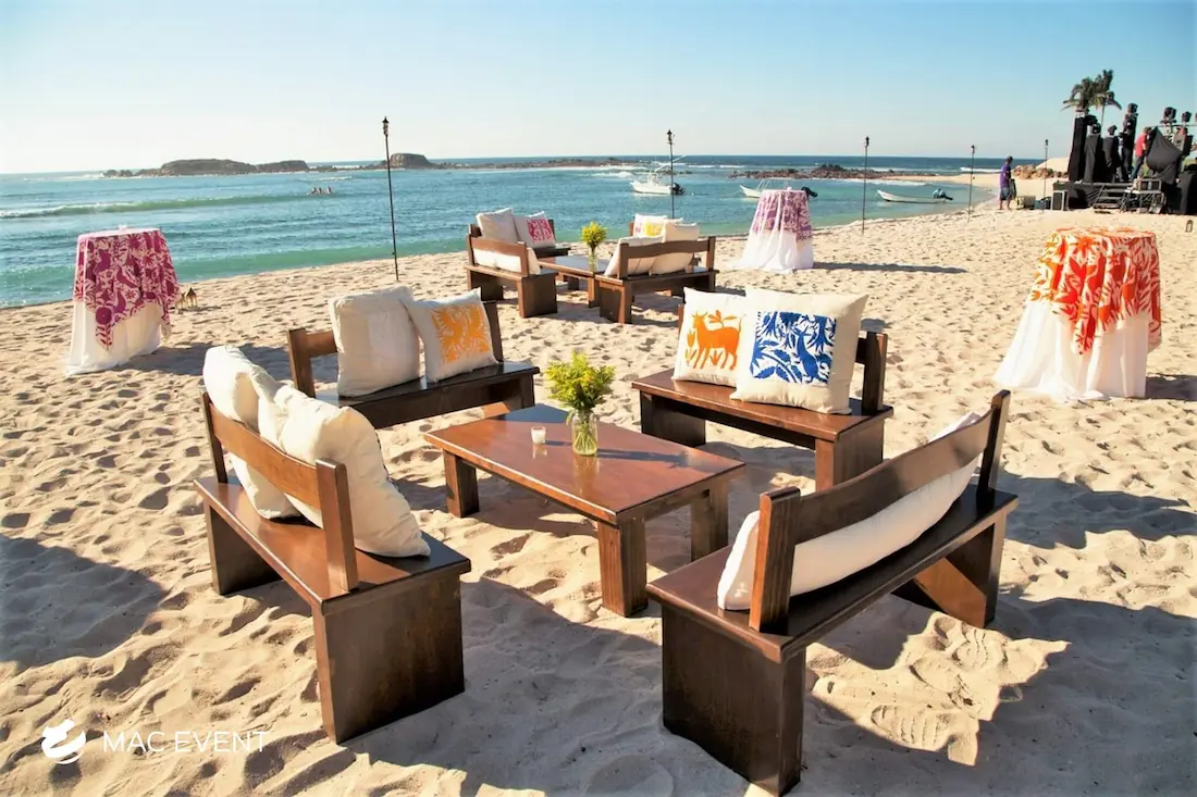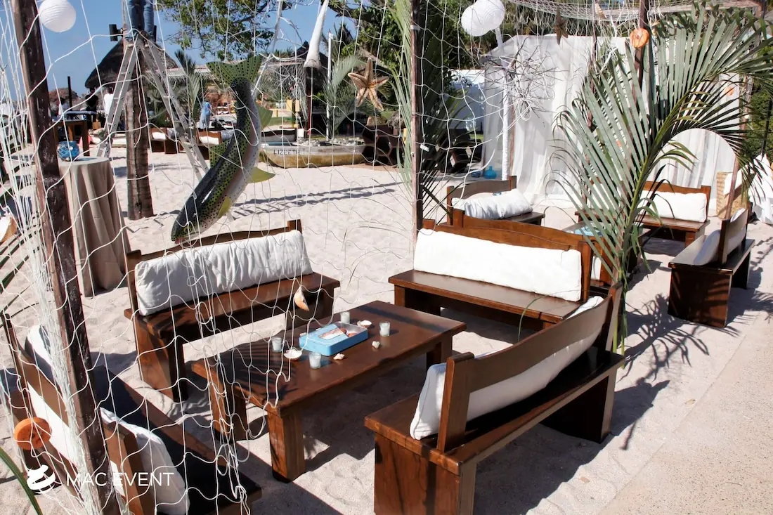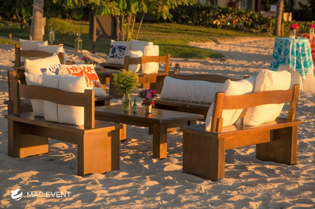 Enhance your rustic-themed event with our rustic lounges, ideal for weddings and events in Holbox. These lounges offer a charming and comfortable seating solution, perfect for creating a warm and inviting atmosphere.