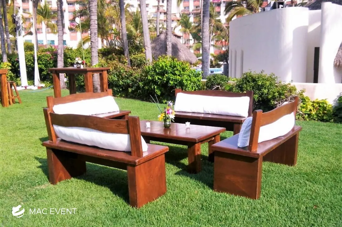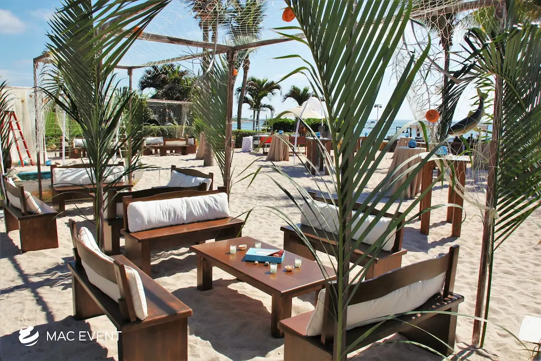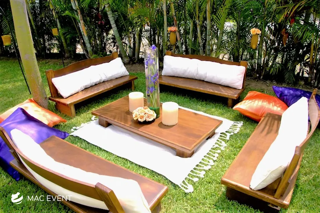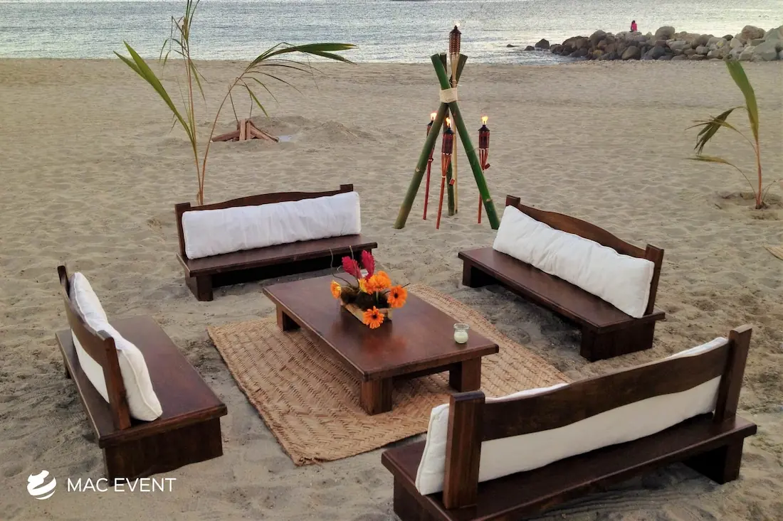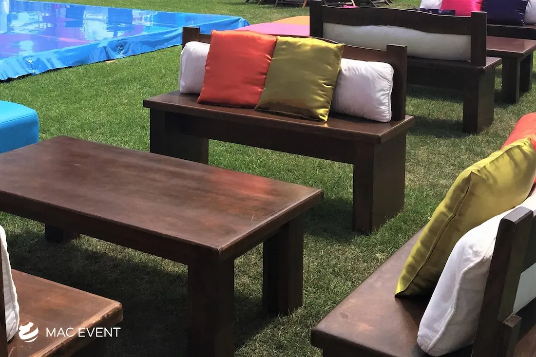 Enhance your rustic-themed event with our rustic lounges, ideal for weddings and events in Holbox. These lounges offer a charming and comfortable seating solution, perfect for creating a warm and inviting atmosphere.